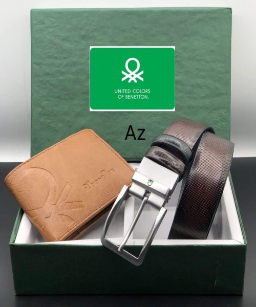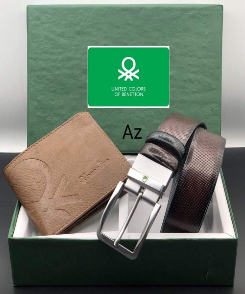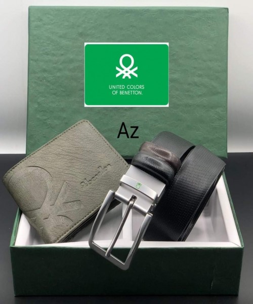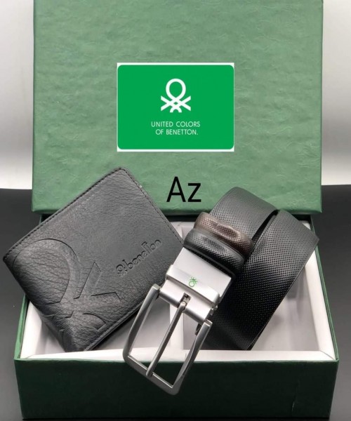 BENETTON WALLET & BELT GENUINE LEATHER ❇️ HEAVY BAKKLE ❇️ GOOD QUALITY ? Riversible BELT SIZE 32/42 WITH BRAND BOX ?